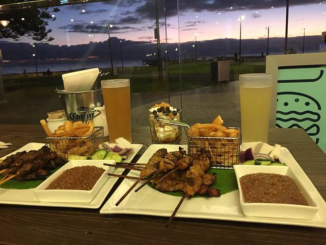 这是一个广场,两边全是餐厅和酒吧,走出去就是沙滩大海