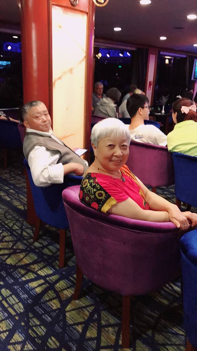 同时呢,还有蛋糕为船上的人庆生日。他们会根据身份证登记的时间,发现有这几天过生日的人,送上印有船LOGO的吊坠,很有纪念价值。很幸运的是三位过生日的人,有两位就是我的爷爷和奶奶。当时超级蒙,不过很快就得到了很多人的祝福,整得老两口还有点害羞呢!!!!