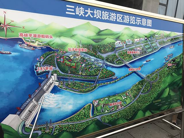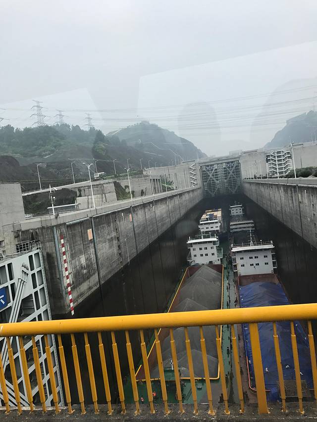 看三峡大坝全景时需要乘坐电梯上去,