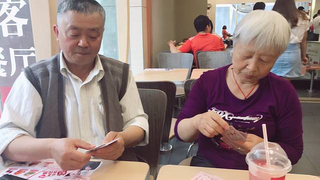 天有点热,带爷爷奶奶吃点肯德基,斗地主打发时间吧