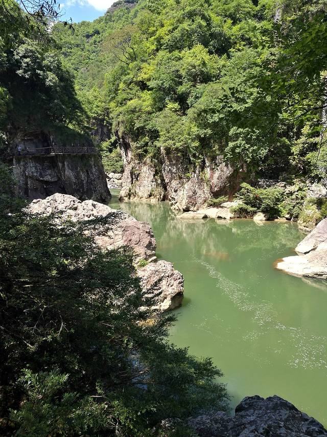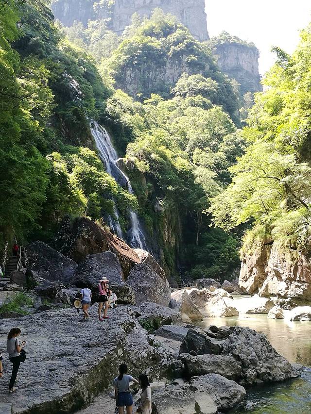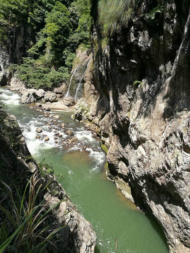 到鸳鸯溪游玩,走的路程很长,有点让人望而生畏,但是只要你下到谷底,就会看到一路风光无限。溪流曲折迂回,淙淙流水时急时缓,沿途深潭、跌水、瀑布频现,树木郁郁葱葱,令人目不暇接,谷风凉爽,使人神清气爽。