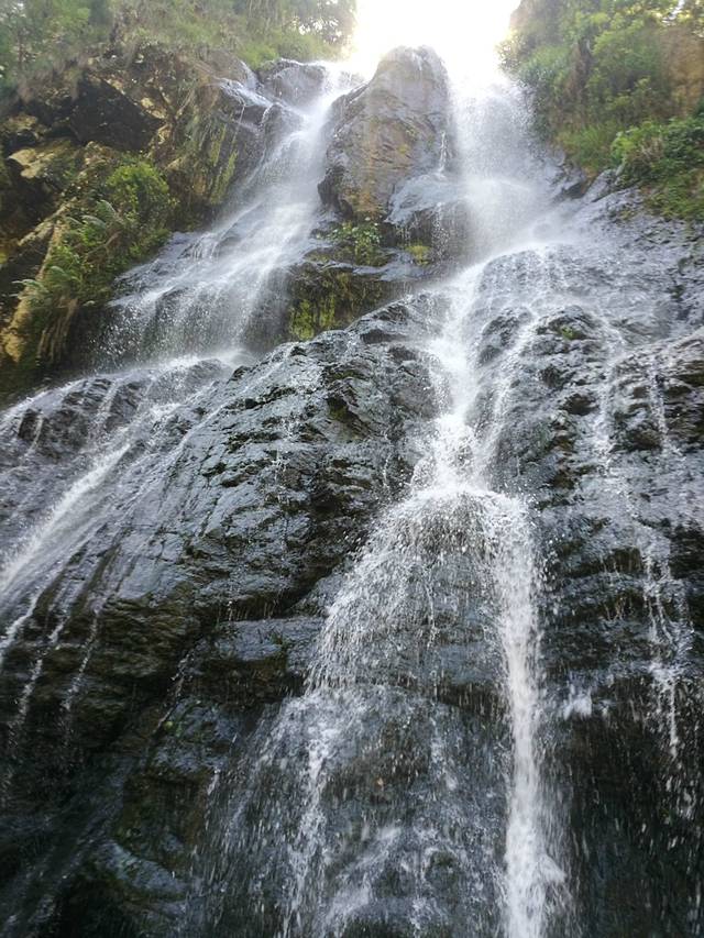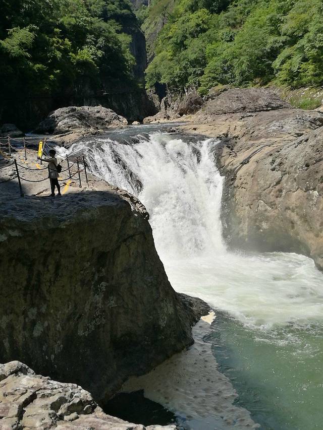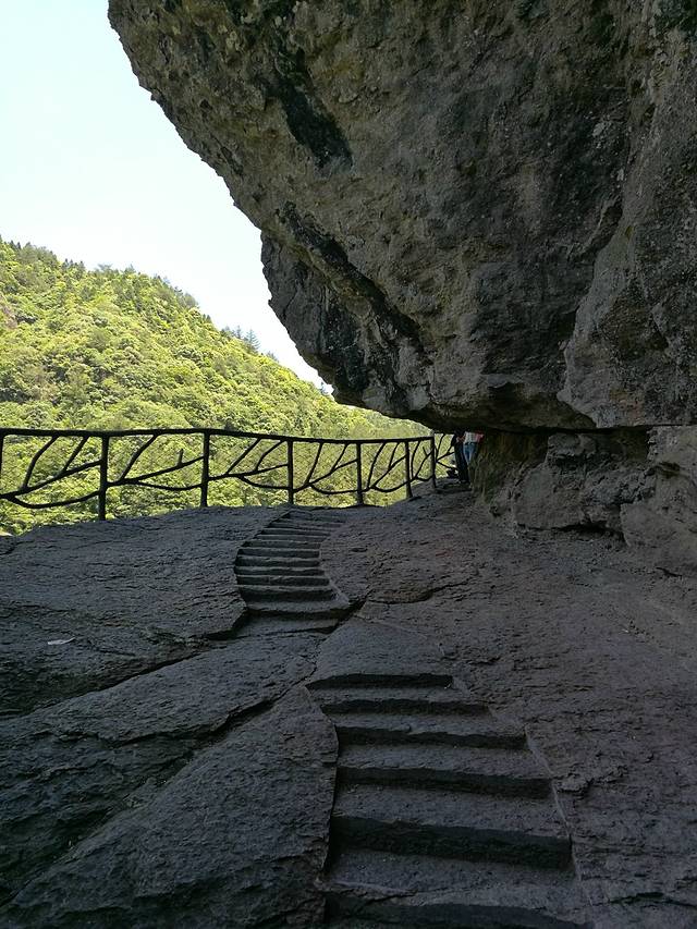 上图为弧壁凹槽,很奇特的地质现象。据研究推测,此处原来有5个连续壶穴,受溪水长期冲刷侵蚀,壶穴相互贯通而成。