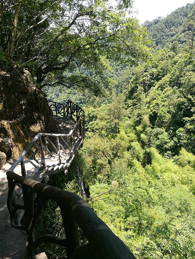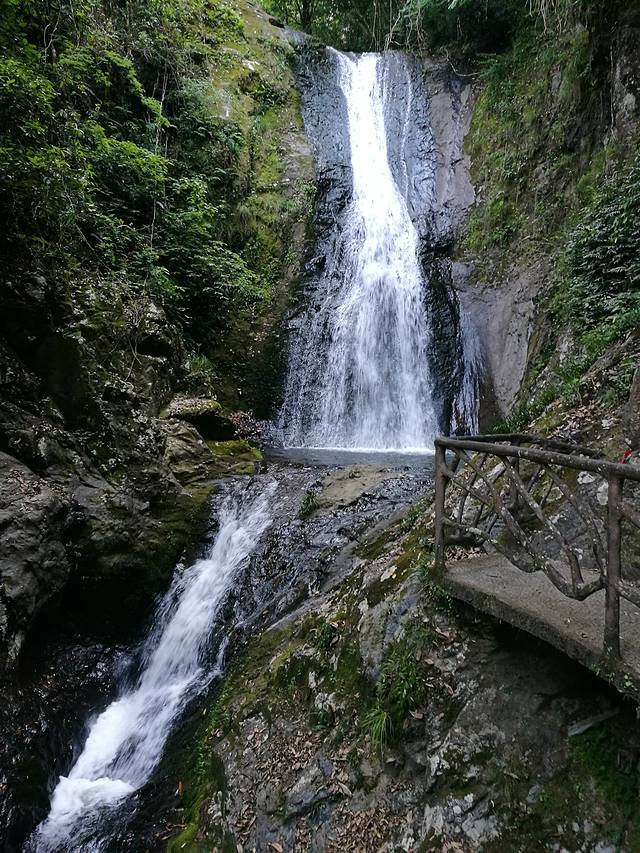 在鸳鸯溪沿途瀑布众多,这与鸳鸯溪周围植被繁茂,水源丰富;山体垂直陡峭有密切关系。