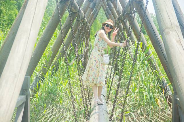 溱湖国家湿地公园,种类繁多的水草和芦苇在广阔的湖面和相互交叉而又纵横的河道遍地都是,让人瞬间从泰州繁华的城市穿越到世外的田园生活。石头慢慢走在木头栈道上观赏溱湖各种湿地植物及风光。