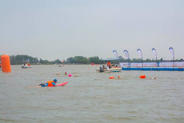 游览溱湖湿地公园不幸运的事,溱湖正在进行铁人三项比赛,交通景区都处于管制,一直到比赛结束,游船才开始发动。不过,在游船上观看铁人三项中游泳项目,还是很精彩的,情不自禁的游客们也分分加入游泳比赛中的拉拉队,比选手们加油助威。