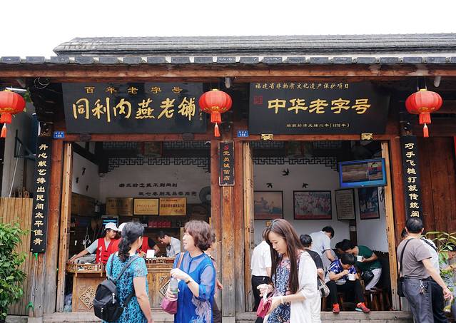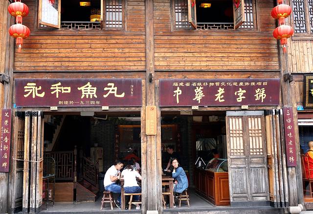 除了看景点,在这片古建筑步行街上,也跳动着时代的脉搏。现代的星巴客、麦当劳与老字号的"永和鱼丸"、"福州软糕店"并排而立。不妨在街上吃吃福州的特色小吃肉燕(又称燕皮馄饨),又或者在鱼丸店里吃鱼丸,鱼肉做的皮、猪肉的馅,特别鲜美。