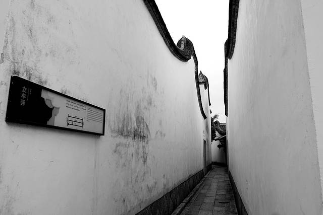 最喜欢这里的马鞍墙,线条极其流畅优美。江南建筑中,绝大多数马鞍墙是呈90度角的直线构成的阶梯形的山墙,唯独“三坊七巷”民居的马鞍墙是曲线形的,墙体随着木屋架的起伏做流线型,翘角伸出宅外,一般是两侧对称,墙头和翘角皆泥塑彩绘,形成了福州古代民居独特的墙头风貌。