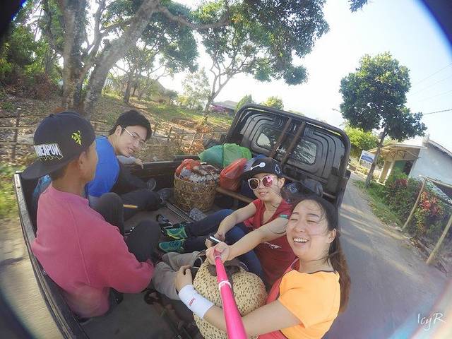 龙目岛机场-圣吉吉海滩:出了海关到机场大厅,左边有个小柜台写着BUS DAMARI,可以买去圣吉吉的巴士票。售票员告诉我们半个小时之后才发车,实际上我们一上车就满员立刻就走了。票价35千/人,大约1个半小时,上车告诉司机我们去哪家旅馆,到附近的位置会提醒你下车。