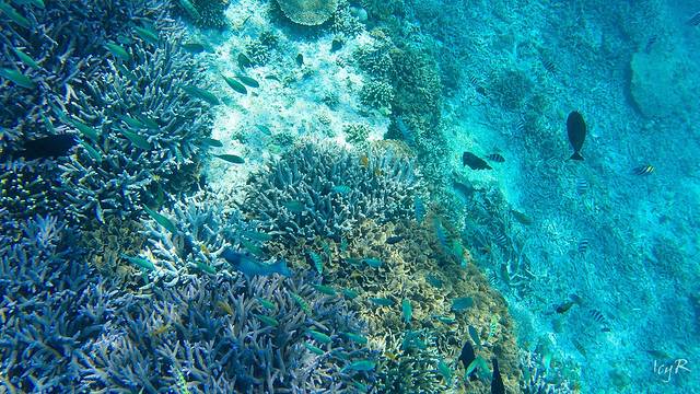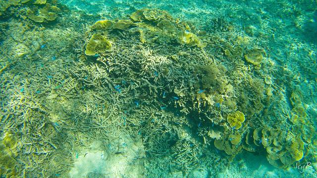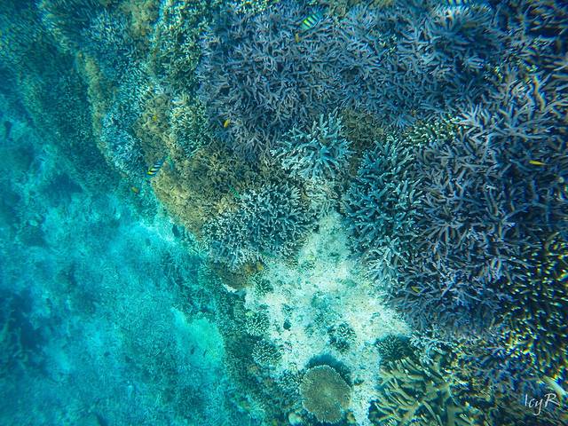 相比起来A岛的潜点就很普通啦,珊瑚不好看,也没有大家伙。。。不过这些闪光的蓝色小鱼还不错,在第一个潜点还看到过很大一片游过,特别壮观。