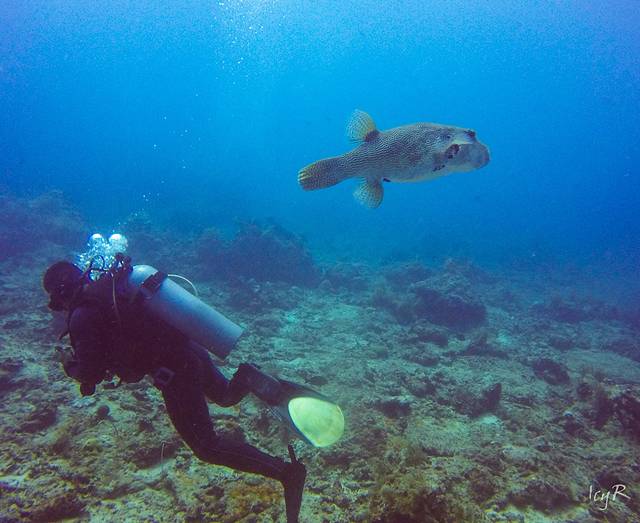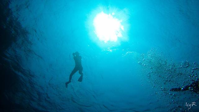 很喜欢偶尔在海底抬头仰望海面,看着阳光射下来,那一刻,深深地感觉到中了蓝色鸦片的毒无可自拔。