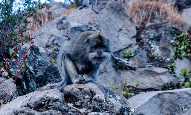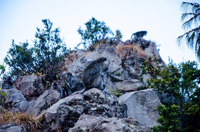 那只猴子一直在树上对着狗咆哮,狗一直懒洋洋趴着,后来还翻个白眼偏头睡了……旁边的老外一直对着猴子说,Come on!It's just a dog!猴子一直不敢跳过来。。。笑cry