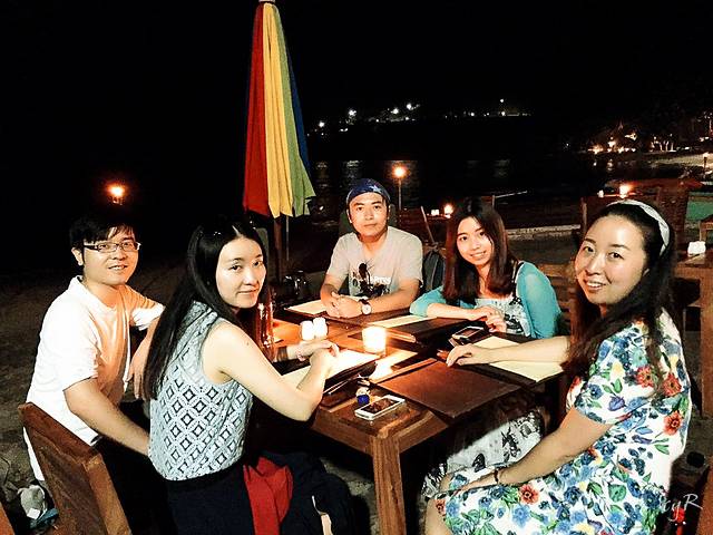 当晚处于完全走不动的状态,旅馆不远的沙滩上找了一家餐厅吃饭,结果是台湾人开的,还有中文菜单。服务生是个台湾美女,给我们推荐了印尼特色的乌拉乌拉和欧拉欧拉。
