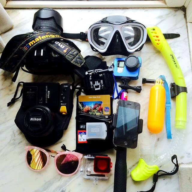 到了Air整理东西才发现,带了一堆Gopro水下配件,火山上一直拿着gopro录着真人秀只剩下一小格电了,下山充电才发现,找不到充电线了!想起出门前拍的那张装备图,扒出来一看里面明明是有充电线的!但是之后我又充过电,估计是忘了取走了。。。后来跟我妈确认,果然在家里