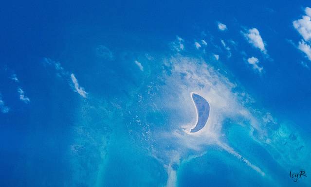 Air岛不大,东面海滩比较繁华,我们订的住宿在西南角,很安静的区域。下图中蓝色部分是比较适合浮潜的区域,而我们酒店对着的红色区域是一片滩涂,每天早晚涨潮时海水会漫上来积起浅浅的水域,海浪打不过来,很适合拍倒影。白天退潮后就只剩下一片沙地。