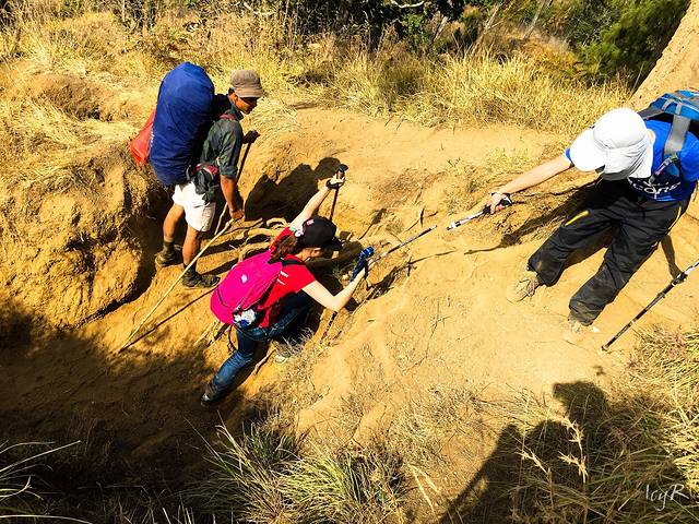 火山灰路段结束后,后面的路并没有想象中轻松,下山走了四个小时,关节已经开始酸痛,每走一步都是煎熬啊。并且脚趾头老是往前窜,还专门买大了一码的鞋,仍然会磨到,疼得不行,基本上每个人都遇到这个问题,所以鞋子一定一定要选好。