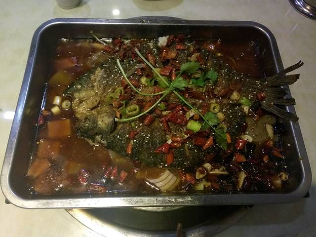 就去洪崖洞外面吃了烤鱼,微辣不是很辣 还有当地的豆奶还不错