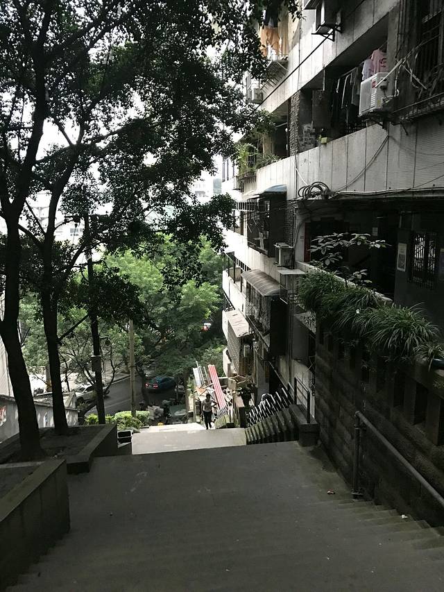 只记得大概走了这么多阶梯,上去又是一条马路,右拐走了一段路就到了解放碑
