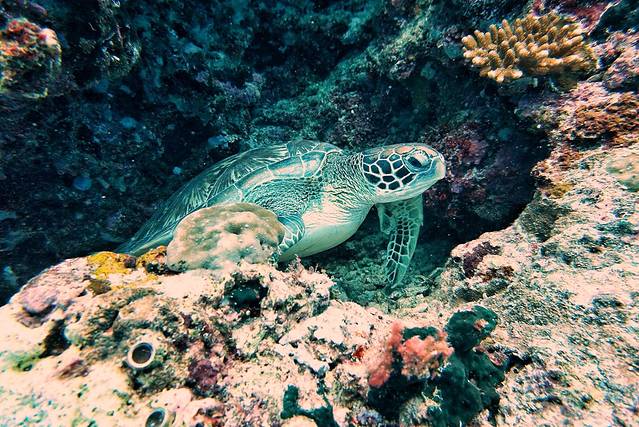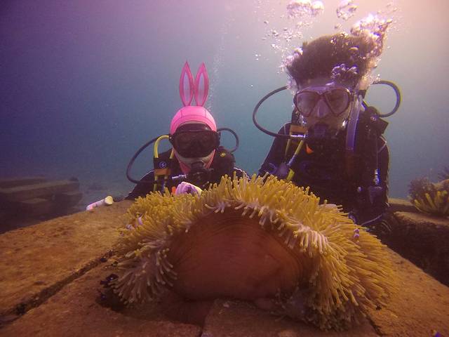 最多人用的潜水相机应该有两种。一种是Olympus/奥林巴斯STYLUS TG-4(我们同行的ping夫妇就是这款,不过是3),擅长拍照,色彩比较好,但是水深只有15米,另一种是GoPro HERO 4 SILVER,擅长录像,水深可达40米,但是拍照一般,而且会偏色,不过一般租赁的店子都会提供滤镜。