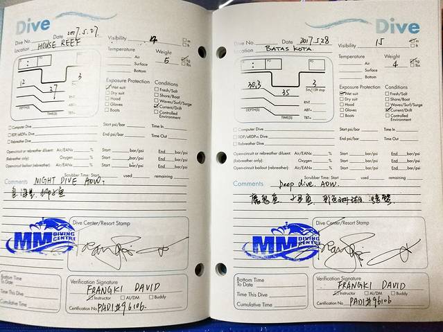 升级aow必备。在国外,人家是很重视潜水日志的,教练会为你记录每一次潜行,你可以在上面记录你看到的海洋生物~这也将是你未来潜水升级的依据。