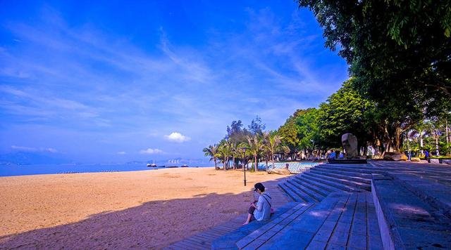3、到曾厝垵买双拖鞋短裤换上,奔去海边的沙滩上,可以啥都不干,只是吹着海风发发呆;或者踩着沙滩,和朋友在海边嬉戏玩水。