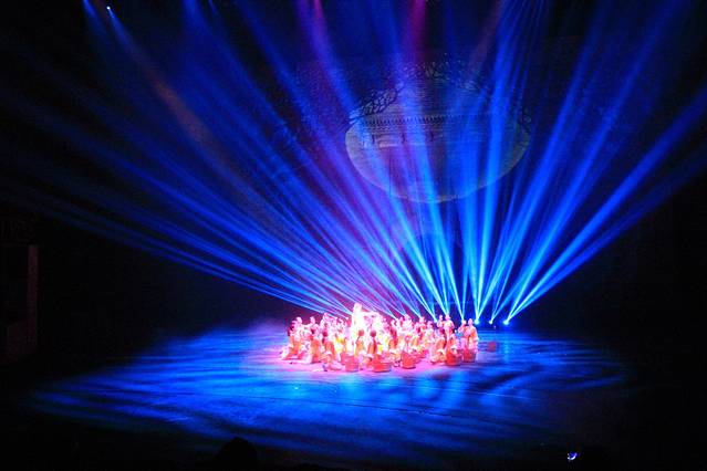 打树花是以个叙述个故事为背景最后打树花是高潮的,灯光效果十分不错!