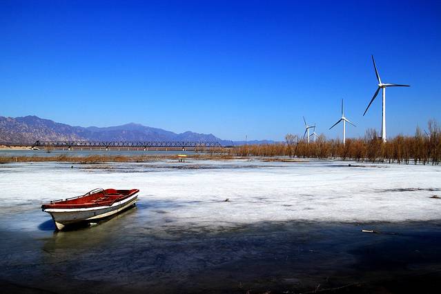 离开之后我们又路过了官厅水库,一路开下去也没有人,相信天气暖和了之后这里会是很多人来度假的地方,毕竟现在天气还是很冷的,湖面都是冰