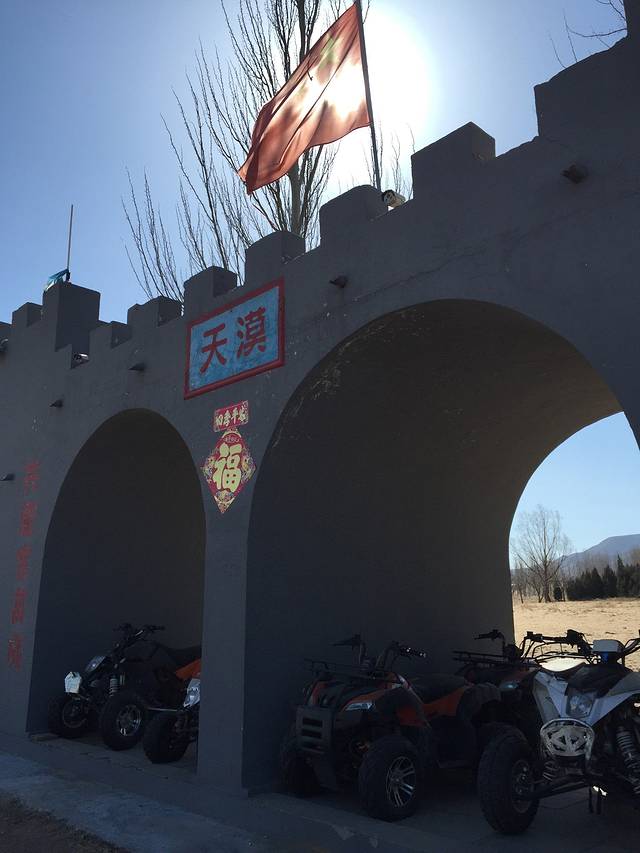 天漠其实有两个地方,但是挨着很近的。先经过的是天漠影视基地,里面是以前有的剧组拍摄完留下的场景。另一个是在往里面走的天漠景区,这两个地方都是要门票的,30/人,当然你可以跟他们讲价,我们影视基地就划到了25/人哈。