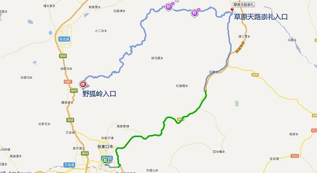 草原天路有两个入口,一个是野狐岭,一个是桦皮岭(崇礼附近),这里下高速就是野狐岭入口。