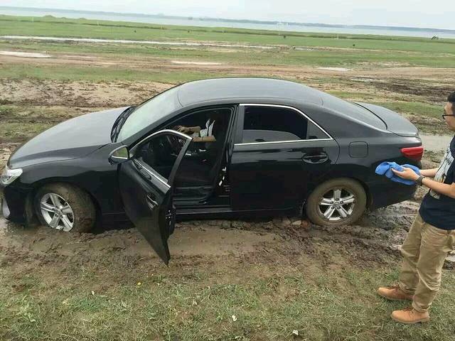 后来出了个大爷,跟我们说可以叫拖车救援什么的多钱忘了反正挺贵的。我们没有理他,一直在自己拯救。开始搬得少,还是出不来,结果又搬了好几趟感觉都快铺成小路了,但是效果还是不太好,没有任何附着力越挠越深。最后想到让女司机来开,我们俩男的在前面在推,挂上1档全油门,就这么愉快的开出来了,为女司机手动点个赞吧最后那个大爷失望的走了。