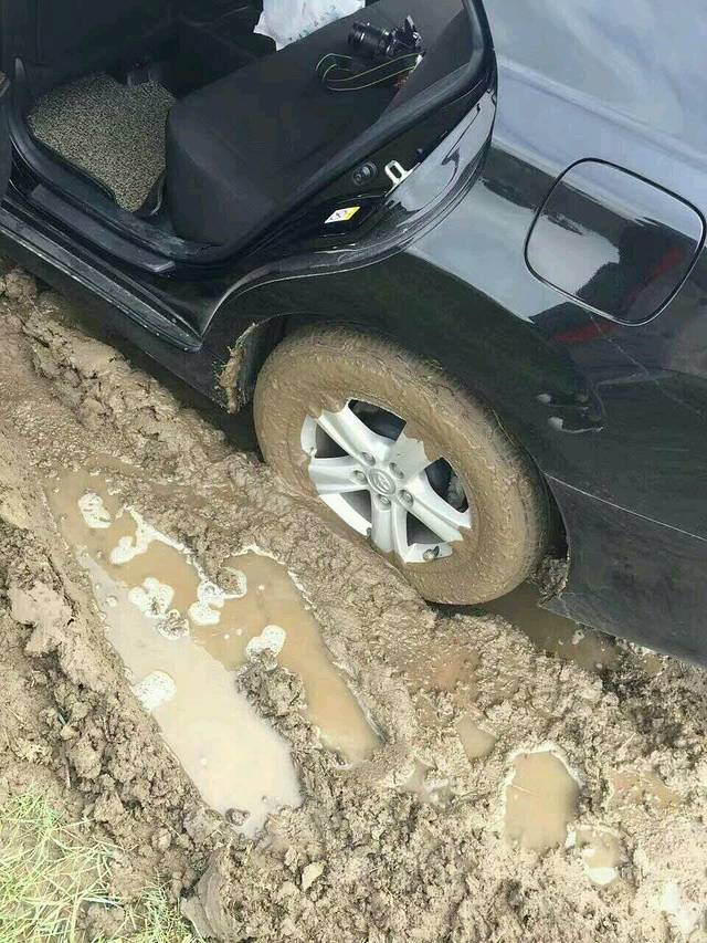 终于逃脱成功了,车头车尾的泥就是我们推的