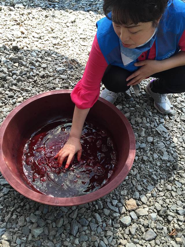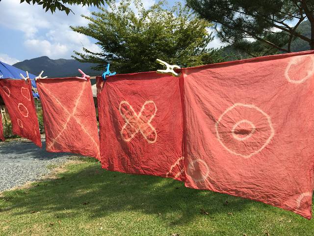 这样纯净的地方,怎么能少了纯净的染色工艺。亲自体验一下天然染色的魅力,也是极好的呢。 村庄负责人耐心地为我们讲解染色过程,每人随心地捆绑自己的手绢,绑紧的部分就不会被染色哟。放入事先由树木制成的天然染色剂中,用手轻柔5分钟,清水稍微洗涤,挂起来晾干就好啦!