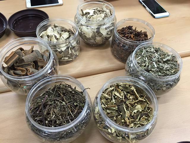 吃完午餐,我们又去了在全罗北道完州郡的安德村,亲手制作韩国特色香囊。一共有6中香料,分别是艾叶、陈皮、桂皮、薄荷枝、当归、八角,由我们任意选3个作为组合,放在自己的香囊中。你猜,我选了什么?