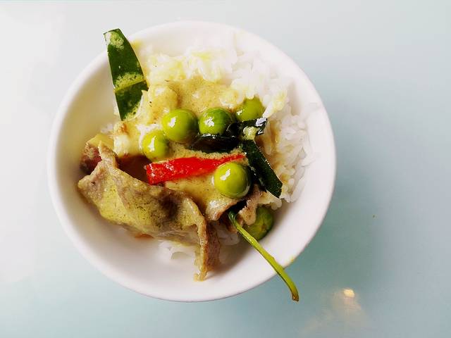 这个豆子不是我们普通吃的青豆,味道有点苦苦的,是什么豆?有人知道吗?!另外,他家在上饭的时候是用盘子上的(图片是我盛出来了),这真的是泰国人的吃法呀~