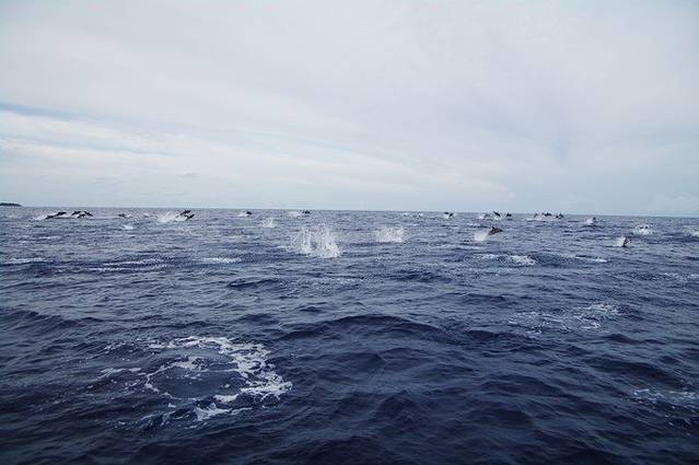 四点半,我们五个人加上向导及工作人员,出海去浪。 我们真是太幸运,见到了千豚齐飞,由于船很小,趴在船帮上都可以碰到水,海豚就在手边游啊游,太奇妙了,工作人员说他来这边三年也是头一次见到这么多海豚,哇塞,论执念的重要性,会有天赐的礼物哦。