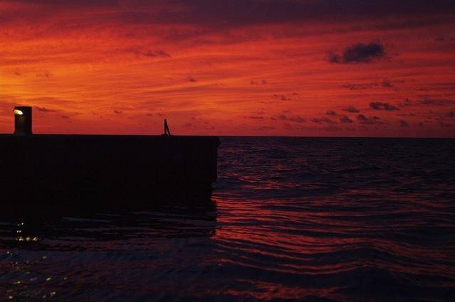 八月天黑的还是挺早的,六点半左右日落,七点就黑了。早晨亮的很早,日出大概是六点的样子。我们的小屋靠东,每天日出时候就窝到院子凉亭看日出。八月属于马代的雨季,我们幸运的很,白天玩的时候天都极好,只在夜里睡后下过一点雨,哈哈,lucky boy lucky girl!