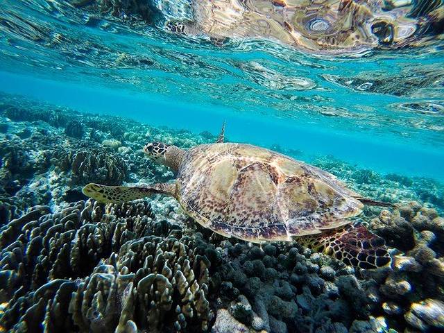 看见一只很大的海龟,coco跟着追了很久,陆上慢吞吞,在海里游得还是蛮快的哩。