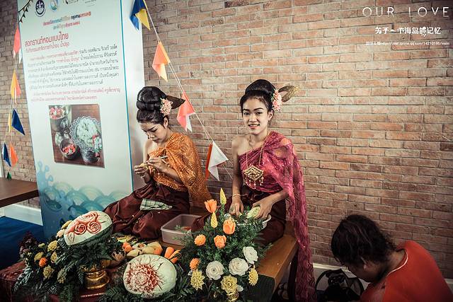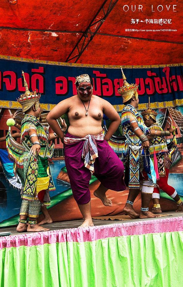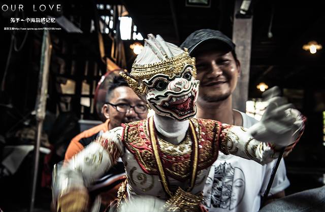 我们在品尝美食的同时也欣赏了泰国传统的木偶戏,泰国木偶剧是泰国国家级非物质文化遗产,被认为是亚洲最有影响力的三大木偶剧种之一。木偶人像一般高40厘米,以古典舞蹈的动作和服饰展示风土人情。传统木偶做工精细,女性木偶面庞雪白,眉眼分明;男性木偶则面部五彩狰狞。泰国木偶剧采用的都是人偶同台的表演方式。演出时,演员和木偶同时登台表演。木偶的口眼和四肢后面都有钢丝小棍连接,在演员的默契配合下,木偶手指和双脚的肢体语言可以很接近真人。我们都亲切和木偶拥抱、亲吻、合照。