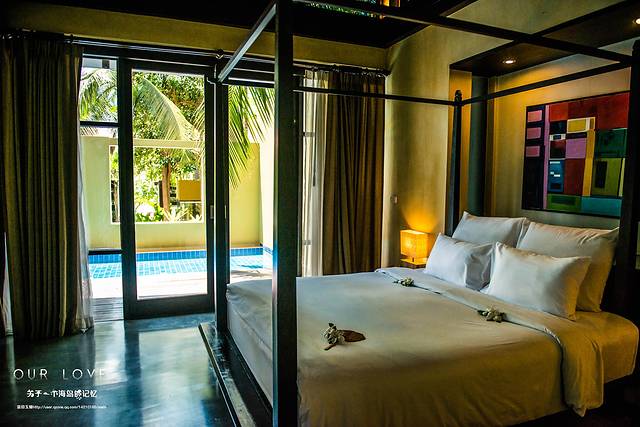 这里风光优美,房间设施齐全,每间房都配有室外鲜花浴池,这里有美的让人窒息的海滩,美得让人哭泣的浪花,还有高高的秋千,浪漫的灯笼帐篷,和观海的开放式餐厅,是欣赏落日的绝佳之地,总之是个很浪漫的海边酒店,优雅静谧,很适合两个人来度假啊度蜜月什么的。