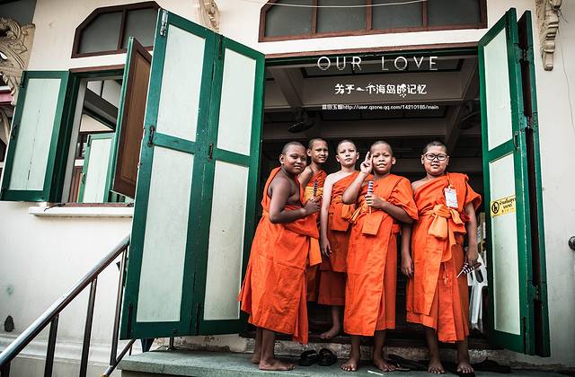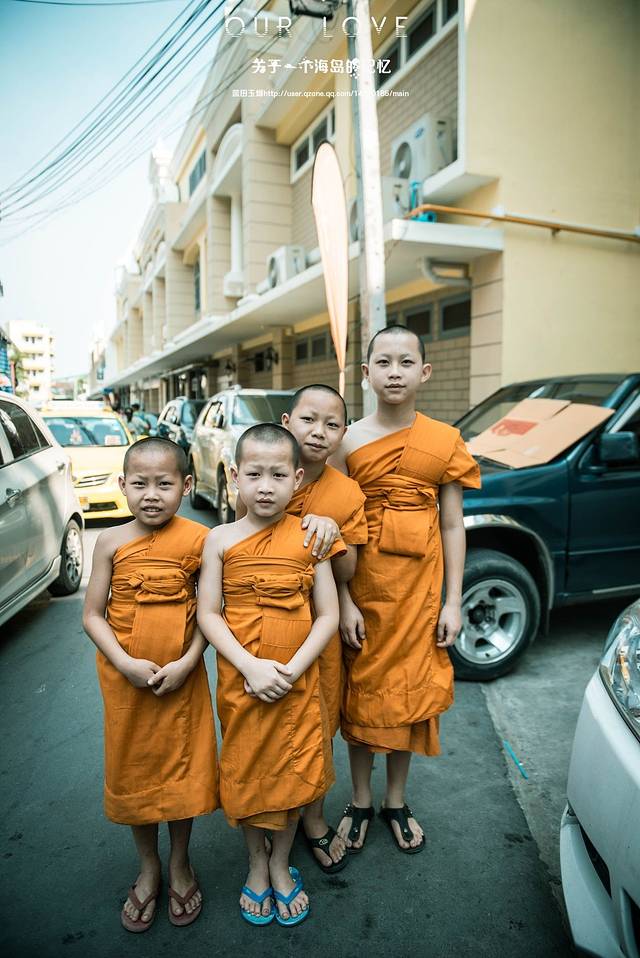 泰国的僧人是不允许女子靠近的,这些小和尚得到同行大和尚允许后,才让我拍照的。