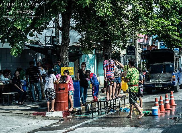 前面两张是下午在车上相机抓拍,后面的就是手机拍摄啦,泰国的泼水节确实太撼动人心了,我实在是没有勇气背相机出去照啊,当然,如果有人愿意赞助我一个D800+24-70,我还是会抛头颅洒热血的,为艺术献身,哈哈!