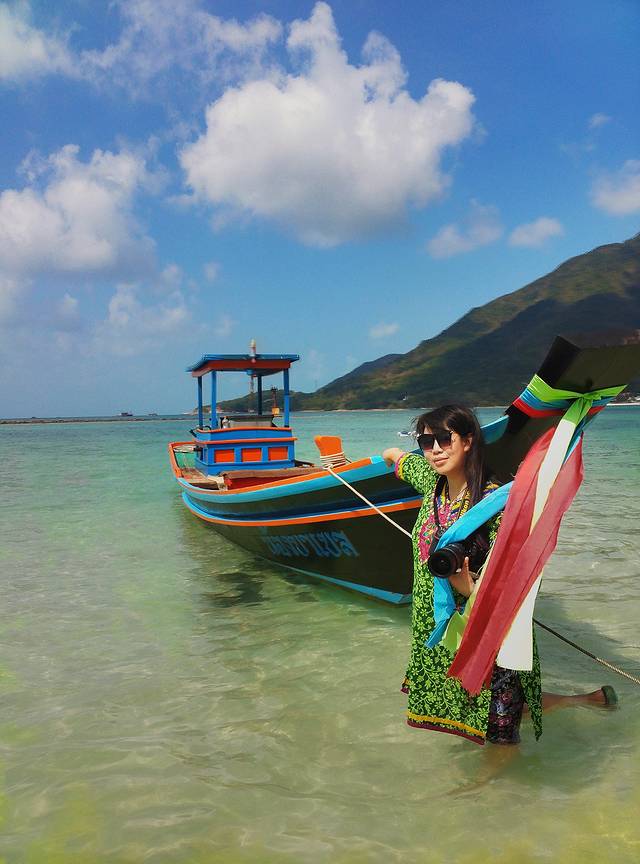 这是帕岸岛的另一个沙滩~~~简直是太美了!!!那海水呈现出几种色彩:浅绿,深绿,浅蓝,蓝色的天空又飘着白色的云朵,我们在这里旋转,旋转,旋转~~~只为了汲取这里的每一份美丽~~~在蓝天白云里,在一望无际下,心胸也变得无比宽阔,海纳百川,包揽万象,人生其实就该如此,是吗?