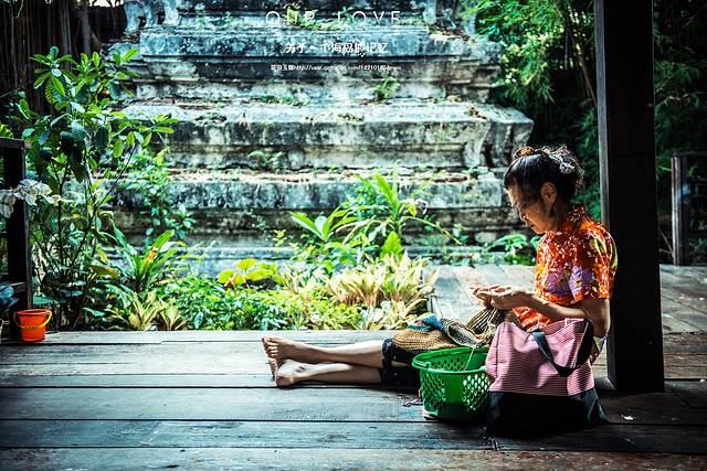 政府也大力扶持泰国的民族文化,所以这里的艺术之家由此衍生。艺术之家是之前这里的居民房,一栋两层楼的河边木房子,有一个小小的院落,种满了鲜花植物和整齐摆放着各种书籍。
