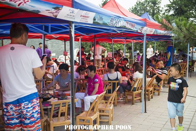 洗漱完毕后去一楼餐厅用过丰富的自选早餐,走出酒店,外面的偌大的停车场已经被前来度假的私家车占满车位。是啊,炎炎夏日平均温度仅为19.2摄氏度的薄刀峰,与繁华匆忙的武汉不仅只有相距3小时的车程,还有相差近20摄氏度的凉爽-----武汉夏日温度平均可是在38摄氏度,有什么理由能阻止追寻清凉的人趋之若鹜?上午十点多,前来体验吊锅的游客已经熙熙攘攘了。服务员提着食材丰富的各类吊锅在人群中穿梭为食客们上菜。