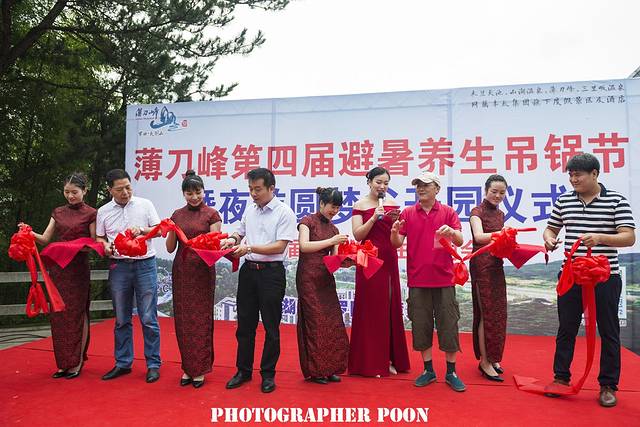 一年前,一个流火七月的夏夜,一群爱好旅游的朋友相约在罗田鹤皋古街的圆梦湖边就着烤串,痛饮啤酒把酒言欢,畅聊摄影技术技巧和旅途中的趣人趣事,还嫌不够尽兴,又在凌晨时分的星空下,点燃带来的钢丝棉拍摄起光绘。分别后,大家忙于各自的工作生活,再没能像那个夜晚般尽情尽兴。因缘巧合,一年后,仍然是这流火的七月,乘着第四届罗田薄刀峰避暑养生吊锅节开幕式暨夜游圆梦谷启动仪式的东风,大家再次欢聚于巍巍大别山五大景区之一的薄刀峰。在山野凉风中斟满杯中的酒,大家共叙别后种种,正是----依山畔水浮凉意,人生有味享清欢。