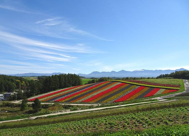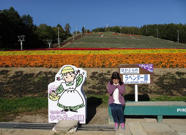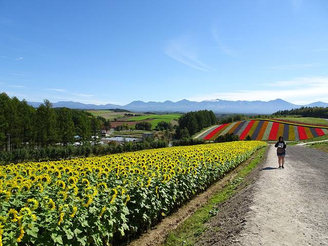 富田农场挺小的,大概一个小时就能逛完了吧,出来后我们准备去彩丘之里,看看导航步行过去要1点几公里而且又上坡,还是挺远的,想打个车过去,无奈路上都没有出租车,只能回到JR站,那里停着一辆,司机听我们说要去哪里,说那里都没有花啦没有风景了,硬是不肯带我们过去,应该说当地人还是挺淳朴的,不然他归他做生意完全不用管这个了呵。富良野这里还有个出名的是薰衣草农场,这个季节也没有薰衣草了。