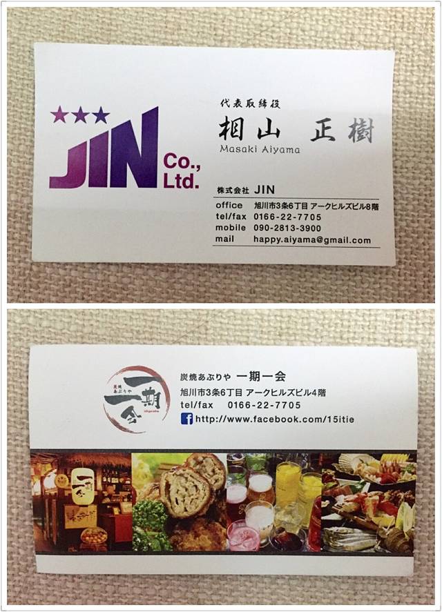 大叔的名片,是在旭川开了饭店的,是个好人,如果大家以后到旭川可以去试试,大叔真的是个非常健谈的热心人。
