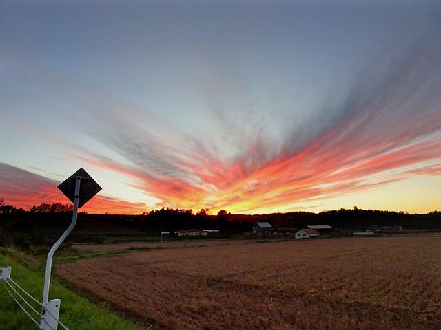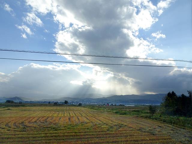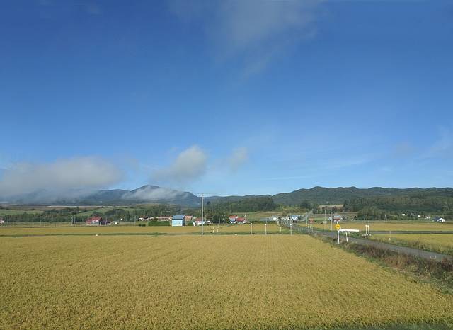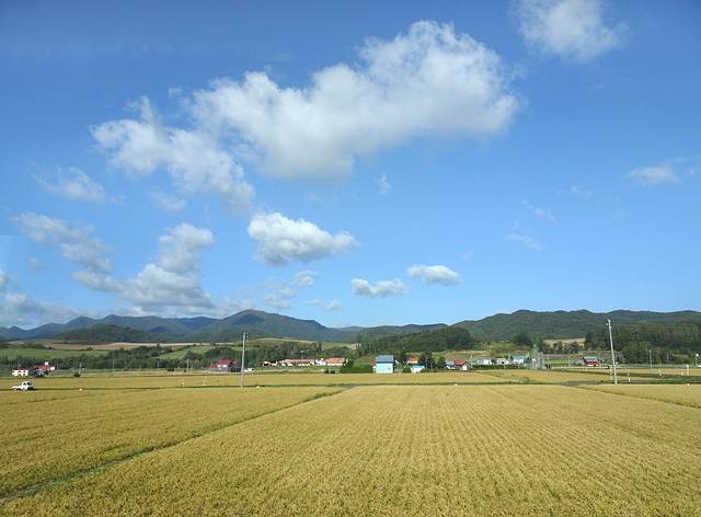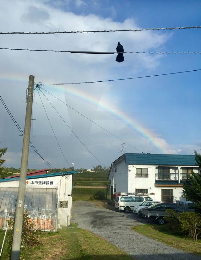 不得不说,其实从下了飞机,我就被这里美好的田园风景迷住了,虽然心情还是比较沉重的,但是从旭川机场到旭川站的路上,一路真的是美好的田园风光,之前下过一阵雨,我们到达时候出了太阳,我看到了在北海道的第一条彩虹,不知道大家看过没有新海诚的动画,他的动画里面的自然风景非常清新美丽,特别让我印象深刻的是些雨过天晴,被阳光照射后呈现粉色的云朵,简直就是二次元到了三次元好么!可惜当时没有相机可以拍。。。