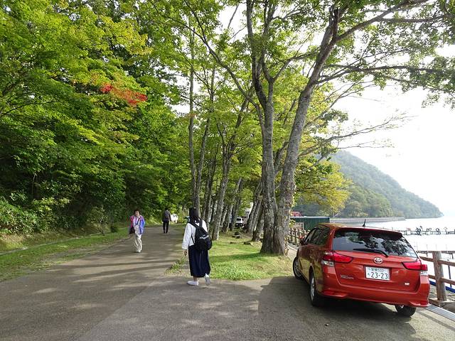 我们刚到的时候天气有点灰蒙蒙,后来渐渐放晴了,不过这次没有见识到最美时候的支笏湖,而且下午一直是逆光,湖水颜色就逊色多了。