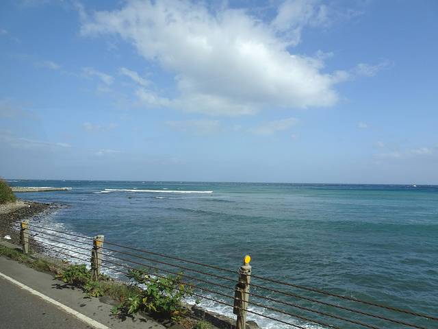 还好,开了一个多小时候,天气放晴了呵呵,而且凑巧我们的位子是被安排在靠左手边的,就是一路海景看过去咯。