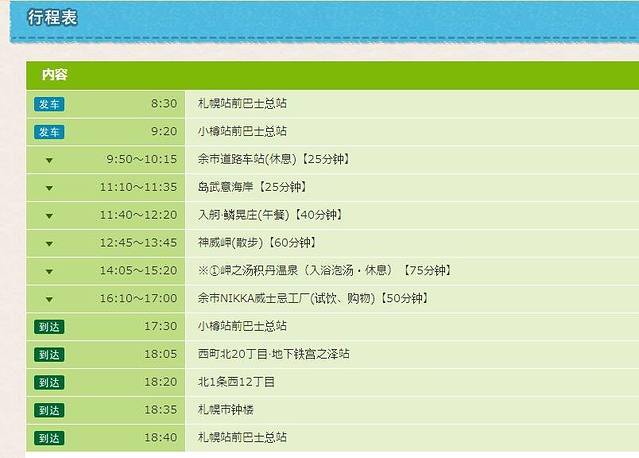 我们有报过一日游的行程,上面有很多路线可以选择,是先预定,然后到了札幌巴士站买票乘车。
